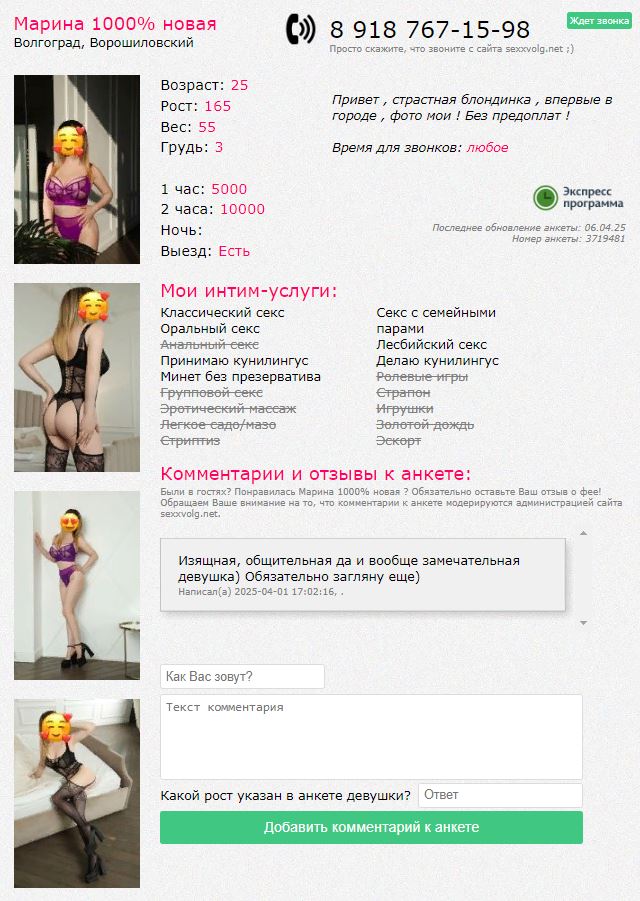 Также наткнулся на такую анкету: https://sex0.sexxvol...ka/369010восемь. Кто-нибудь был?