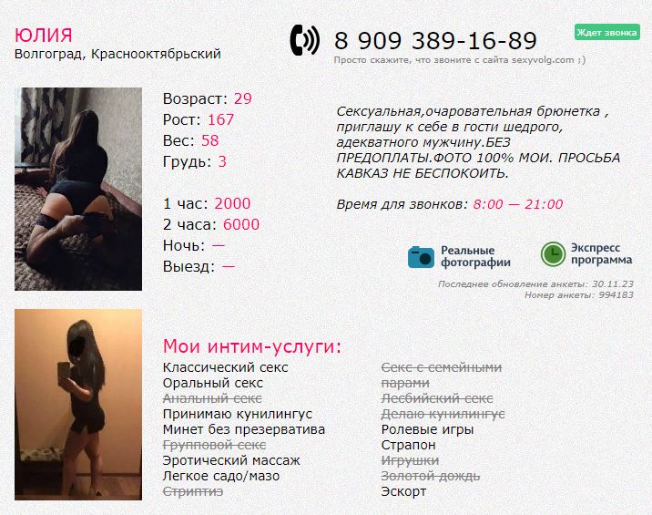 Интересный опыт можно сходить но тут более салонный подход, но я люблю поцелуи и 69 и наездницу, так как визуально нравится и вообще без телефонов не следить за временем но сейчас это единицы и если устала предложить сменить позу а не отдых жаль Вики нет та была близка к идеалу. Подскажите плиз кто еще есть в влг не объемные и не старые по таким параметрам , сейчас только по отзывам ранее Оксану увидел работает и Диану, Роксана мне не пойдет наверное слишком уж для меня дрыща и Дана но она не в влг сейчас пока что.