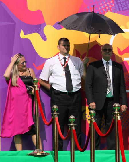 Михалкову напекло, а супруга и ладошкой от солнца укроется.