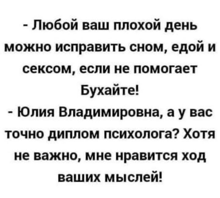 — Понимаешь, многие люди по понедельникам начинают новую жизнь, поэтому я прихожу во вторник — новая жизнь у них уже закончилась и в зале пусто.