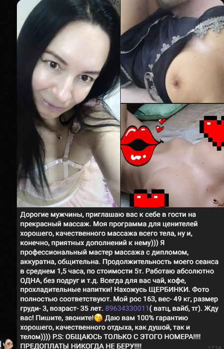 P.S. фото не леплю, они без проблем присылают в ЛС, а те, что уже успели заблокировать, так же потерли и переписку
