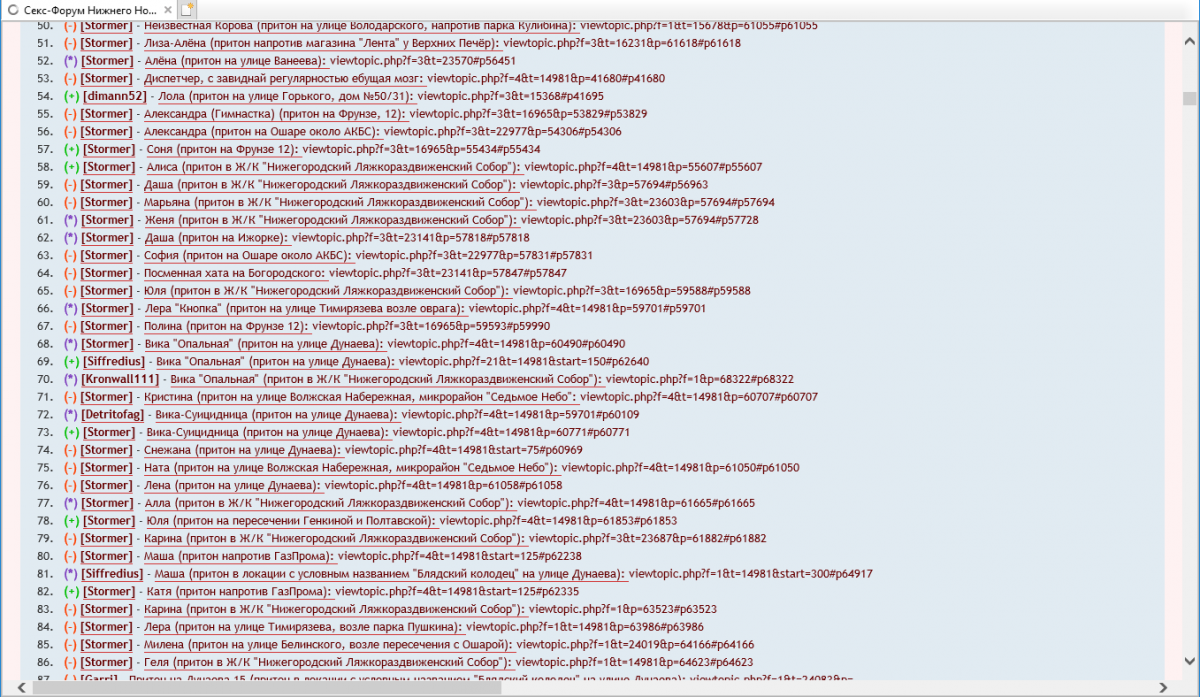 Вызвали у меня наибольшый интерес , паскоку аснавательно примелькались исчо эн лет нозат (присмареццо хатябы к дате на снимке Валерия - (Фотка №0008).jpg ). Присуцтвавали ани и ф ныне жывой онкете http://privatnnover.com/women/1029 (ДА706!) с неизвестным ценнегом и номером тиляфона "902-688-17-08" [ +79026881708 ] , принадлежало сиё чюдо прероды диспеччерской сети с условным названием "Володарка-Генкиной" (сцылка мертва ), каторая сафременем апсалютно выродилась и стала "водить" лишь ф "Розовый Жемчуг" и кантору с условным названием "МГ/Р", што, тащем-то, не пративаречит риально наблядаемай кортинке , веть телефон "905-664-29-76" [ +79056642976 ] прозванивалсо мною неаднакратно - ведёт он куда-то на Невзоровых, точьных данных нет (3.0к-онкеты Лох не мамонт - лох не вымрет.jpg не жалую - хажу па таким васнафном, када саффсем уш пазванить больше некуда , патаму и не дашол да места дасихпор... видима, фсио-таки придёццо сабрать яйтса ф кулак и дайти ), но первоя кандидатура ф списке - ето хата канторы с услофным названием "МГ/Р", так што буттьте начеку и не зобывайте, што, если и хажывать туды - то не дароже, чем за 2.5к (хатя йа там за фсе паследние годы неприпаменаю не адной макращолки, каторая и на ету сумму вытянула бы ). Ну а тиаритически ето может быть фсио, што угодно - фплоть до хаты диспеччерской сети с условным названием "Обитель Крикуши" .