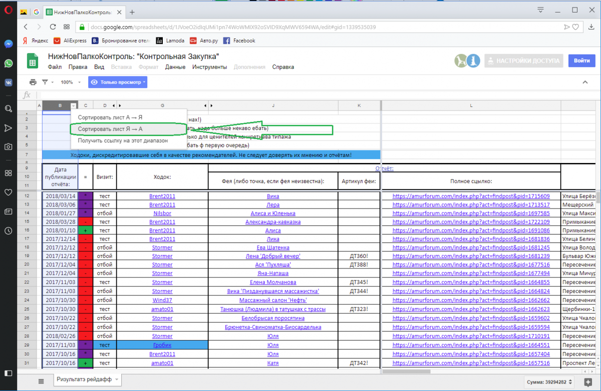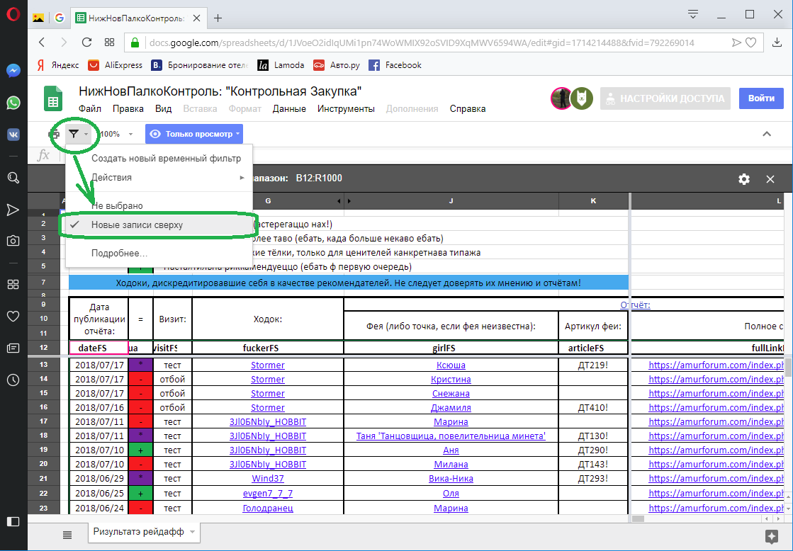 У меня убедительная просьба, если можно, в файлике экселя по контрольной закупке сделать по умолчанию сортировку по убыванию даты отчета. В большинстве своем использую телефон,а там в экселе просто нет функции по сортировке значения колонки. В обозримом будущем планирую совершить мега рейд. Звонить и искать анкет придется много. Поэтому заранее пожелание высказываю. Спасибо