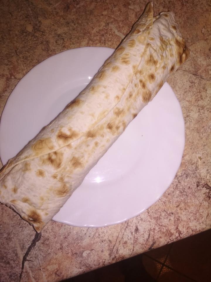 Фото "вегетарианский шаверма", прилагаю. Уже дома, на тарелке.