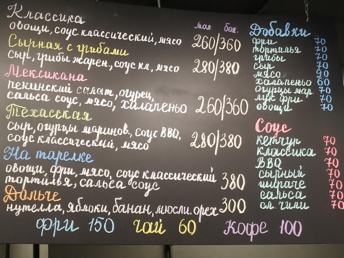 Большой выбор кавказских, итальянских, мексиканских и т.д. вариантов шавермы. Большие и маленькие порции в лаваше (или разных аналогах, уже не помню).
