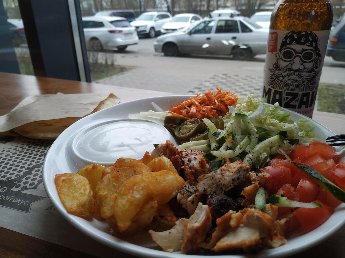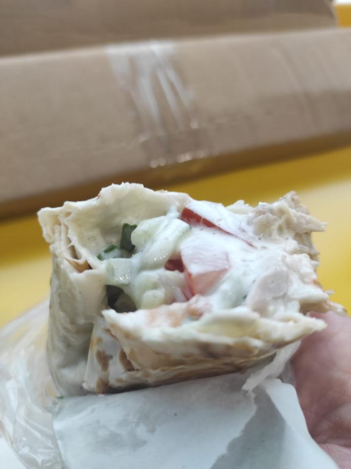 Брал шавы и на тарелке и классеку. Классека средняя. На тарелке, опять же, хорошо. Если бы ещё соус не ставили на общую тарелку, грубо говоря на еду ставят чеплашку с соусом, это зашквар. А так, вообще, овощи были не жухлые, кура довольно сочная. Порция средняя, т.е 500-550гр есть (на тарелке) До классических 600гр не соизволили.