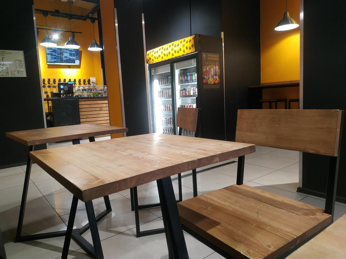 На помещение без слёз не взглянешь: 3 кв/м, три доски шириной 30 см прикручены к стенам (импровизированные столики), два барных стула+две табуретки. Шум, грязь. Посетители - уважаемые иностранные специалисты с Апрашки и прочие прекрасные граждане. Внутри не заседал (тем более пива нет), пару раз брал шаву с собой: