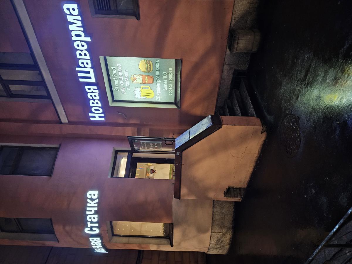 Чуть дальше по Стачек, напротив администрации района (чьи работники там тоже закупаются), есть ещё одна годная шавуха - Шашлыкян (5.0 на Яндексе). Стачек 15. Точка даже более популярная, чем Новая шаверма (заказ можно ждать минут 30-35 легко, так как у них там очередь из электронных заказов). Начинка из шашлыков, мангал у них прямо там. Свинина, баранина, телятина. Набивают очень плотно. Лично мне не понравился сам концепт, но было вкусно и очень сытно. Возможно суховато. Не уверен, что это вообще можно назвать шавермой. Из минусов - работники не особо "клиентоориентированные".