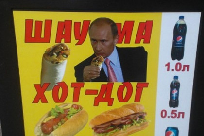 В Одессе фотография президента РФ Владимира Путина была использована для рекламирования ларька с шаурмой. Об этом сообщает местный сайт «Думская». В подтверждение источник опубликовал фотографии. На рекламной стойке российский президент изображен с шаурмой в руке («Думская» в связи с этим отмечает, что кушанье к российскому президенту «грубо пририсовали в фотошопе»).