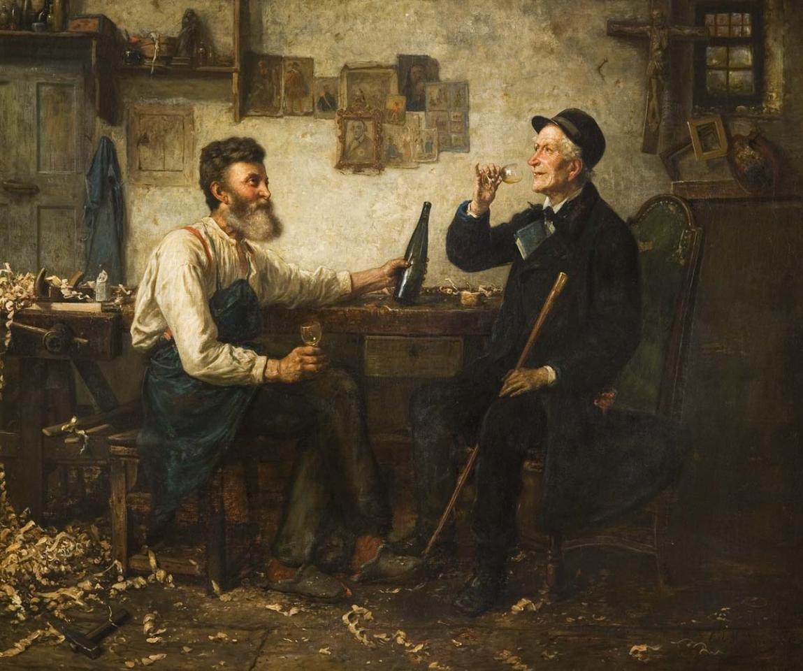 Одна из дам амура спрашивает мужа, который (вероятно) хочет потратить деньги на походы: