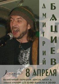 Дмитрий "ДУЧЕ" Бациев - питерский музыкант, поэт, композитор, автор-исполнитель, участник групп: КАФЕ, СЛОНЫ, СОЛНЦЕ-ХМАРИ, НАТЕ!, ВЫХОД, и т.д., с сольной авторской программой в стиле "Джаз-фолк-панк-бард".