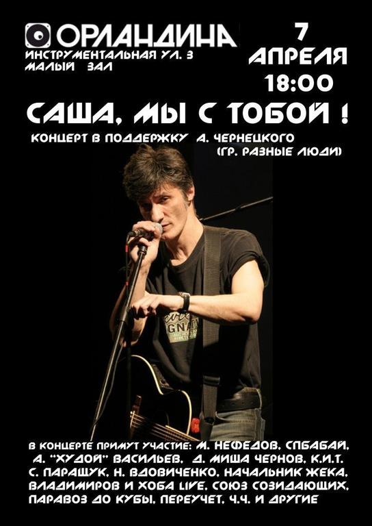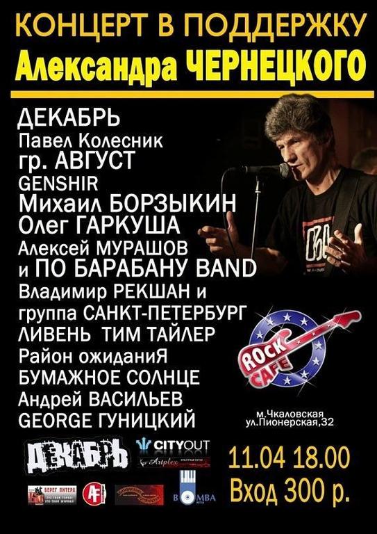 И ещё один концерт в поддержку Чернецкого - в RockCafe на Чкаловской 11 апреля: