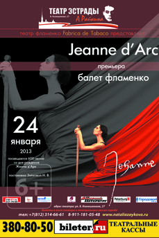 24 января в Театре Эстрады состоится премьера спектакля фламенко, посвященного 600-летию со дня рождения Жанны д'Арк. Это новая работа режиссёра-постановщика и танцовщицы Н. Зайковой.
