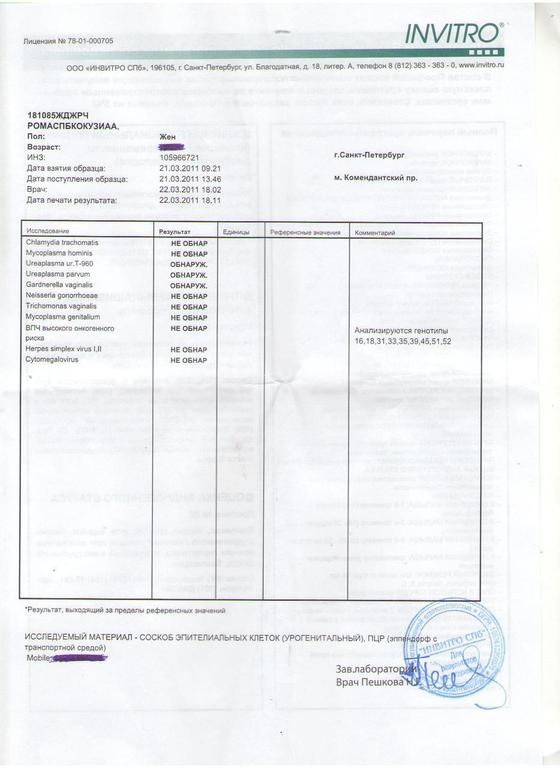 это серьезные обвинения в мой адрес но по результатам анализов от 21 числа не обнаружено у меня ничего серьезного, тем более гонореи, хламидиоза, трихомониаза и могу это доказать на фактах а не на словах.спасибо