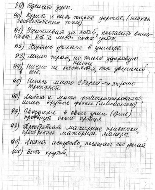 охуительный 89 пункт: "сделать зубы"......кстати, не Полины из Города грехов конспект пизданули? или у кого из Рыбных? чего-то там ни про халат, ни про тапочки - ни слова?