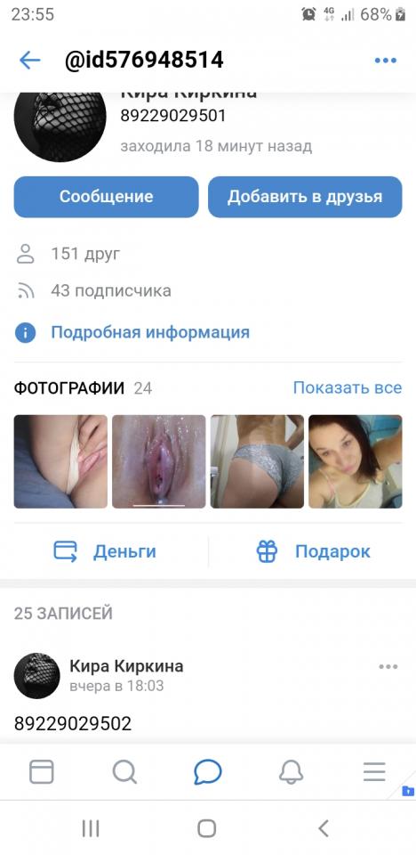 Одновременно во ВК от неё полился поток неадекватных сообщений.