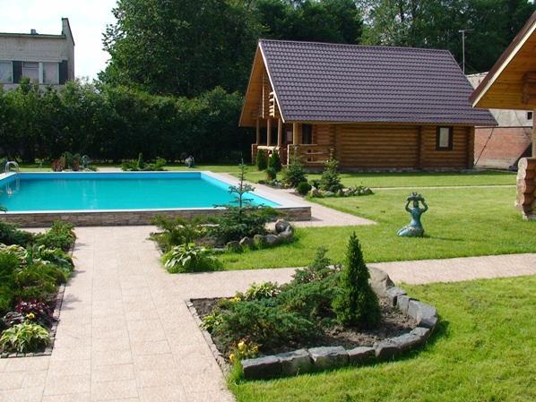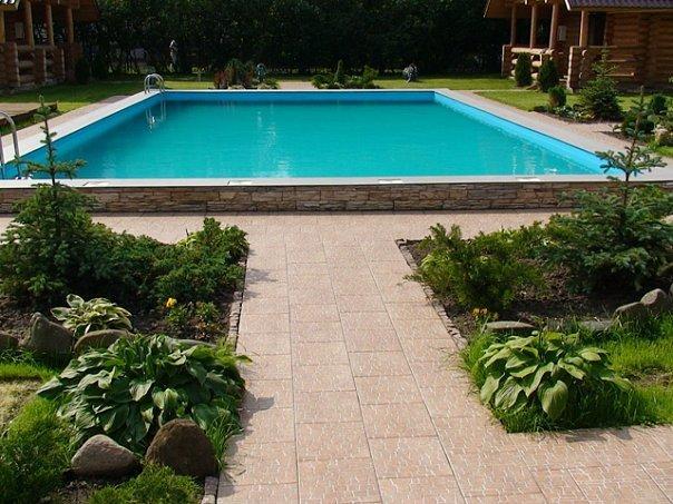 Общий бассейн под открытым небом примерно 6х8. Присутствует система самоочистки и подсветки в вечернее время, без подогрева.