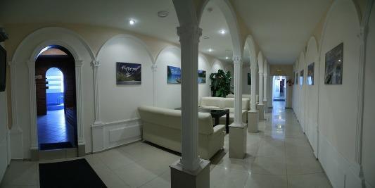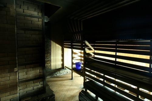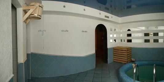 Состоит из нескольких отдельных номеров в основном здании, там же находится и русская парная на дровах, и 4-х отдельно стоящих двухэтажных домиков вокруг бассейна. Этакий небольшой оазис в спальном районе города. Номера отличаются по содержимому. В наличии бильярд (пул), мини бассейн (купель), турецкий хамам, массажный стол, комнаты отдыха, каминный зал.