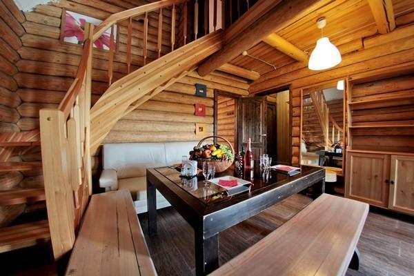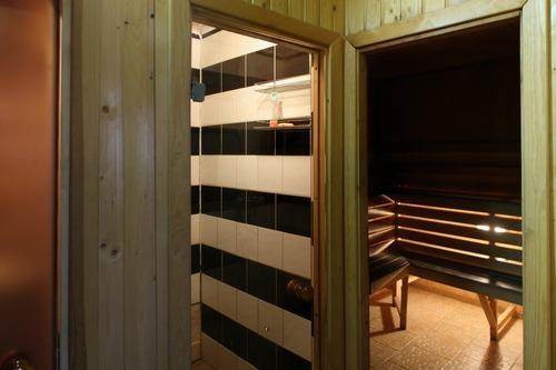 В каждом домике имеется сауна, душ, 2-3 комнаты для отдыха, основной зал с большим столом, ТВ-Триколор, МузЦентр караоке, терасса, балкон. В домике может расположиться компания до 10 человек, но в прайс включена оплата только за 4 чел. в час. За каждого дополнительного нужно будет доплатить по 100руб. Тапки, полотенца, простыни и халаты за доп оплату. Есть финские веники. Шапки отсутствуют – берите свои.