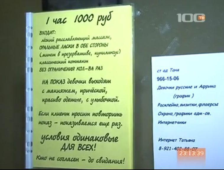 В Василеостровском районе закрыт интим-салон на 17 мест. Своих клиентов девушки без комплексов искали благодаря уличным объявлениям и сайтам знакомств. Восьми комнат для обслуживания мужского населения уже явно не хватало, поэтому количество спальных мест было увеличено благодаря коридорам. В момент прибытия сотрудников правоохранительных органов неудовлетворенные посетители требовали вернуть деньги.
