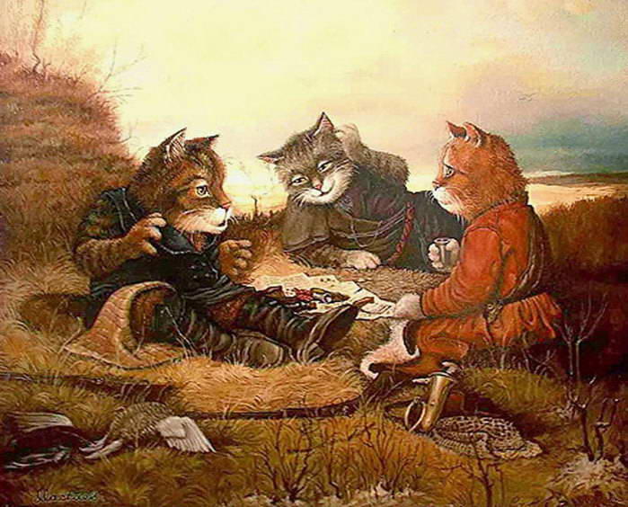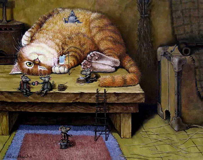 В выходные отделю, сейчас некогда. Вообще мне эта тема тоже нравится, на других форумах частенько в подобных темах пишу. Например, особо любимое мной направление - художники, главной темой творчества которых являются коты. Дед 100% поддержит )))