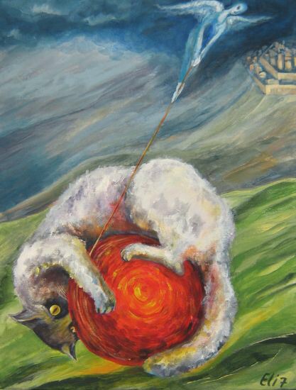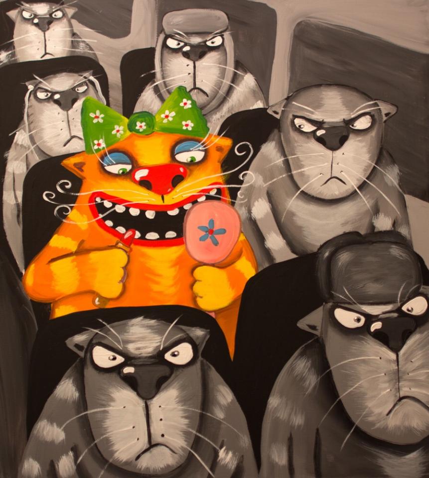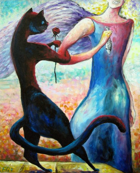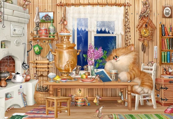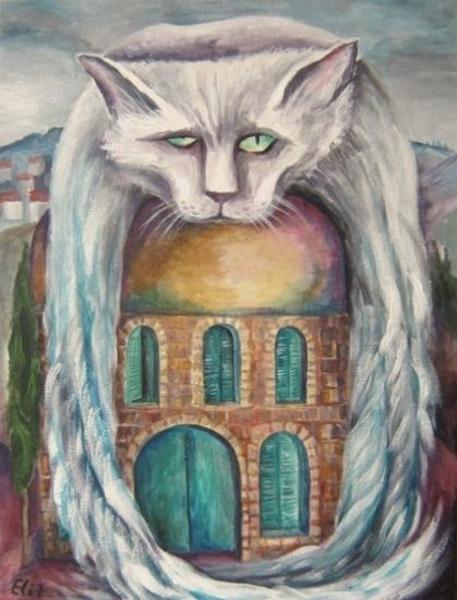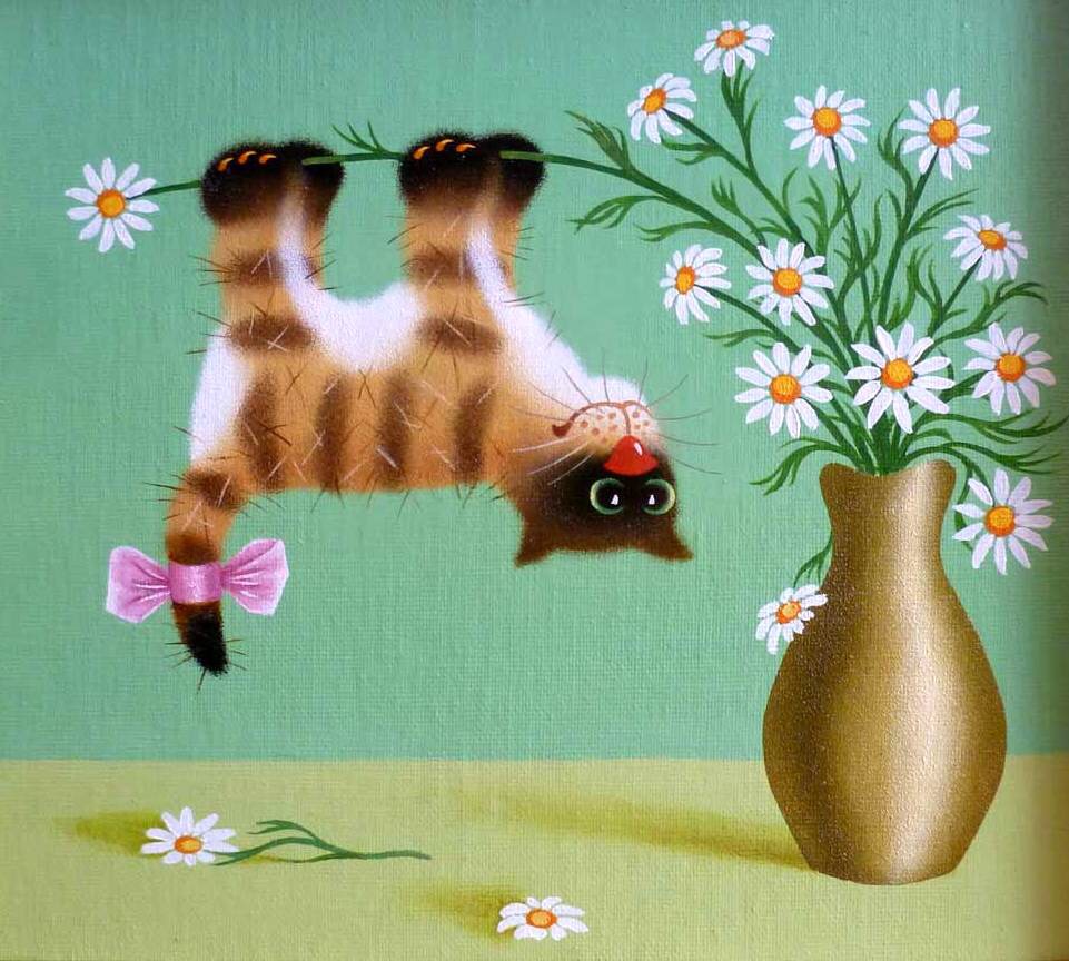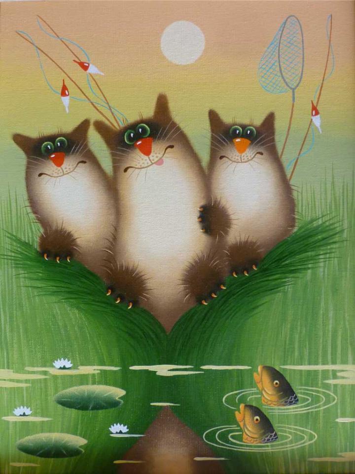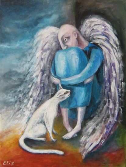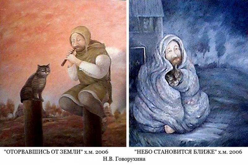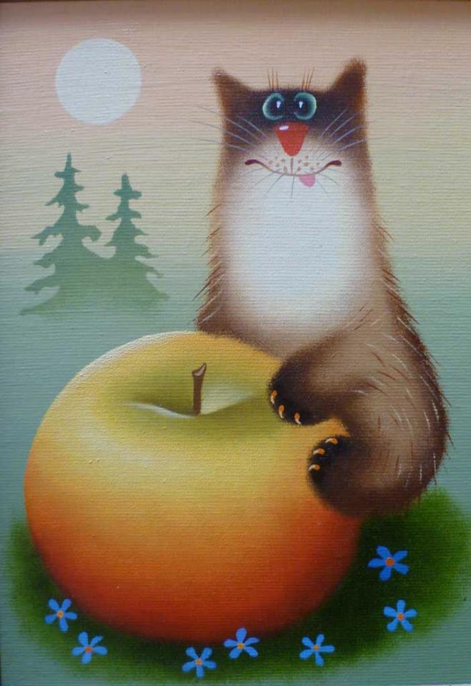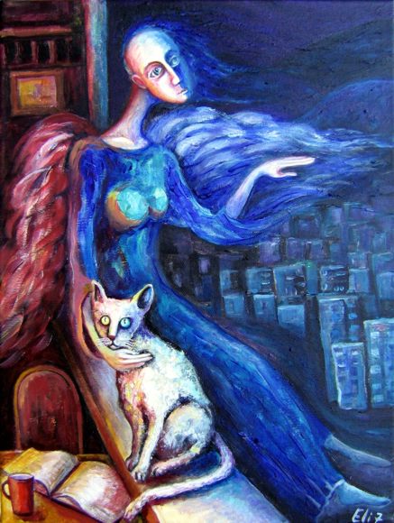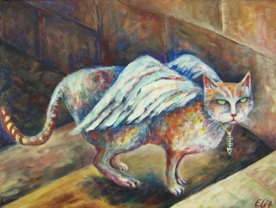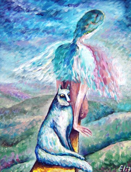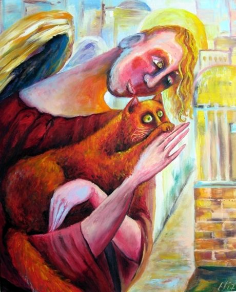 У неё картин про котов - ну больше ста штук точно. Особенно доставляет серия "Коты и ангелы".