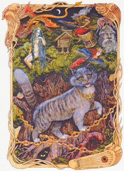 В русских сказах, во многом вышедших из старославянских, кошка — один из основных персонажей, причем едва ли не самый умный зверь. Всем известный Кот Баюн сам слагал сказы, обладал уникальным голосом (слышным за семь верст), мог своими песнями как зачаровывать до смерти, так и излечивать от болезней.