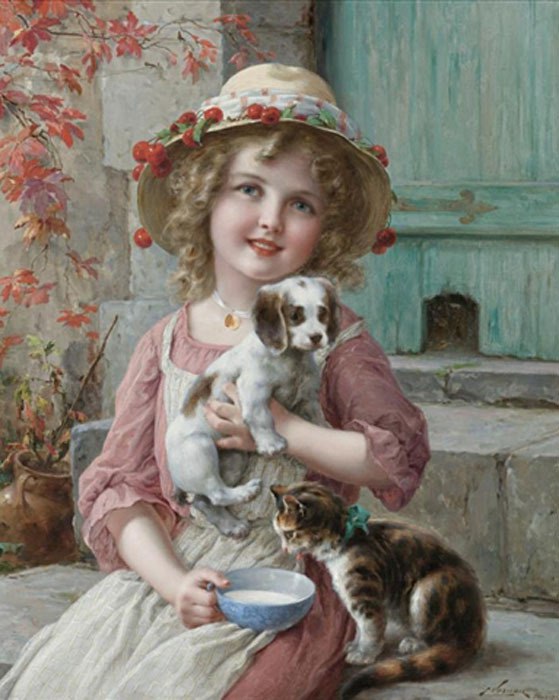 Эмиль Верон. (1890-1920) - французский художник, жил и работал в Лондоне, а также в Париже. Вернон специализировался на портретной живописи и жанровых сценах. Особенно популярными являются его портреты молодых девушек и детей, которые пользуются большим спросом в США, Канаде и Японии.