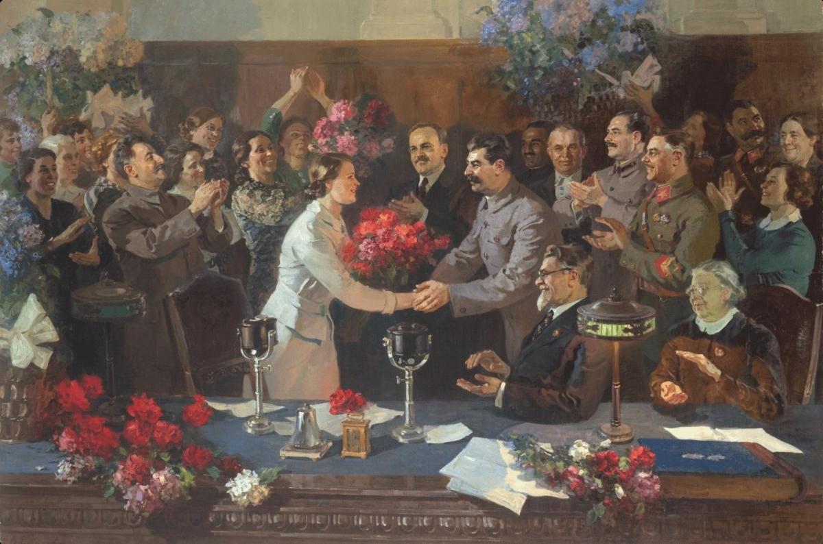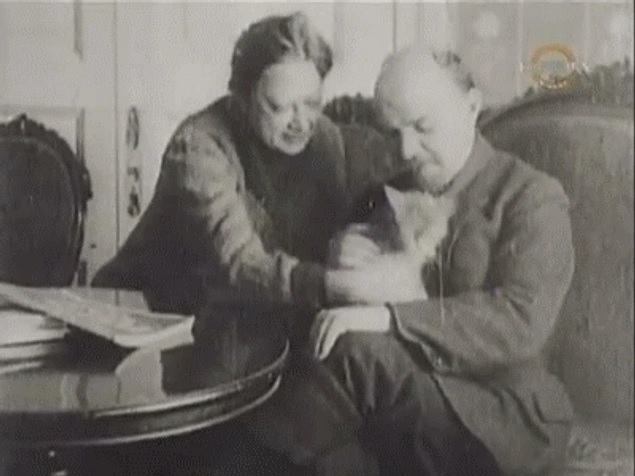 Справа за столом сидит, видимо, Н.К. Крупская.