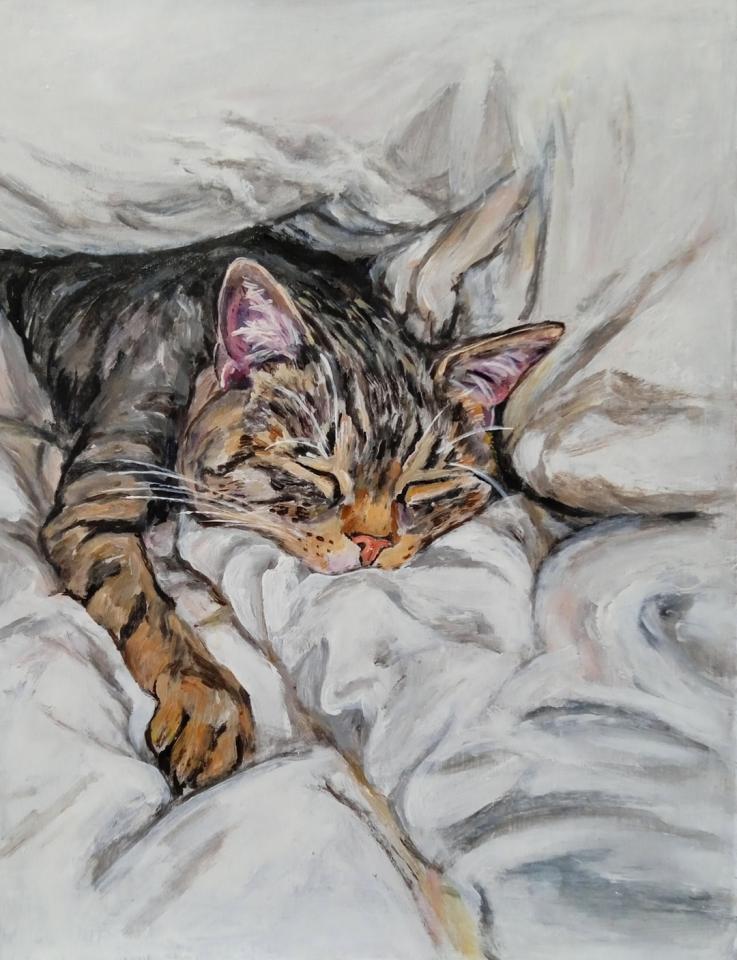 Вивьен Ли, чей актерский талант не уступал невероятной красоте, — одна из моих любимых актрис; ко всему прочему эта потрясающая женщина была еще и котофилом. «Я всегда была без ума от кошек», — говорила она. Тисси стал первым общим котом Вивьен Ли и Лоуренса Оливье. Беспородного котенка они взяли в отеле, где в то время жили, — там как раз принесла потомство местная кошка. Позже Оливье дарил жене только сиамских котов, роскошных красавцев, носивших подаренный хозяином ошейник с позолоченными колокольчиками. У Тисси такого ошейника не было, зато были чудесные разноцветные глаза, и Роджер Фёрс, известный кино- и театральный художник, написал его портрет — рядом с красавицей-хозяйкой. Работа, по-моему, очаровательная — теплая и нежная.