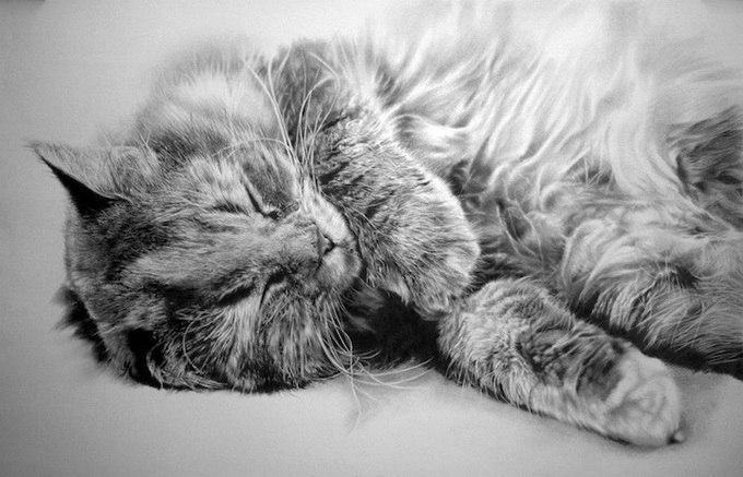 Художник Пол Лунг (Paul Lung) создает невероятные карандашные рисунки, которые выглядят как фотографии. Лунгу требуется 40-60 часов, чтобы нарисовать один портрет кошки.