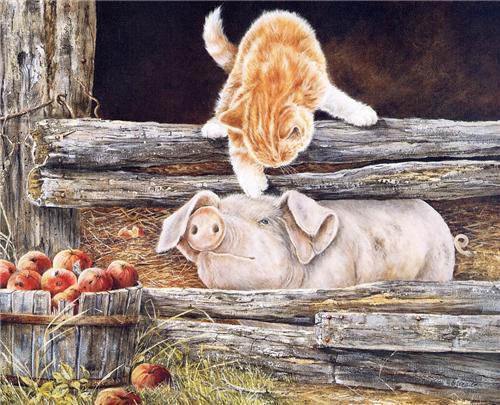 Или всё дело в настройках восприятия? Кот - доброе, мягкое, пушистое, Свинья - грязное, порочное животное. А может просто художникам само нахождение рядом с натурой-свиньей не очень нравится? А котов повсеместно наблюдают...