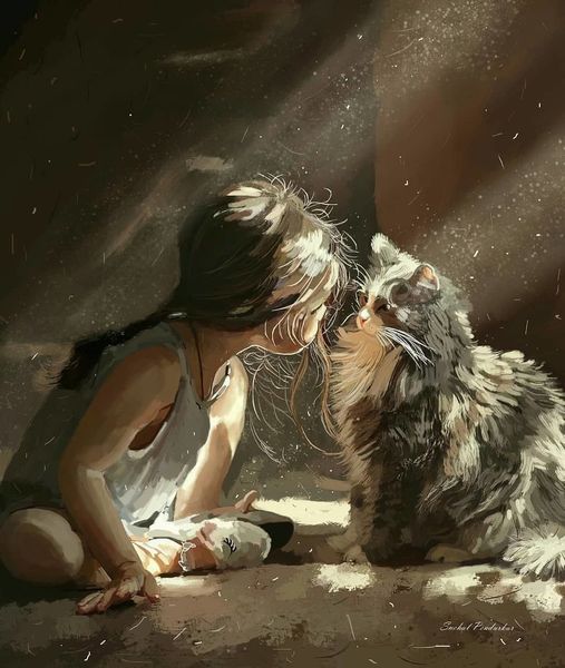 Девочка и кошки.