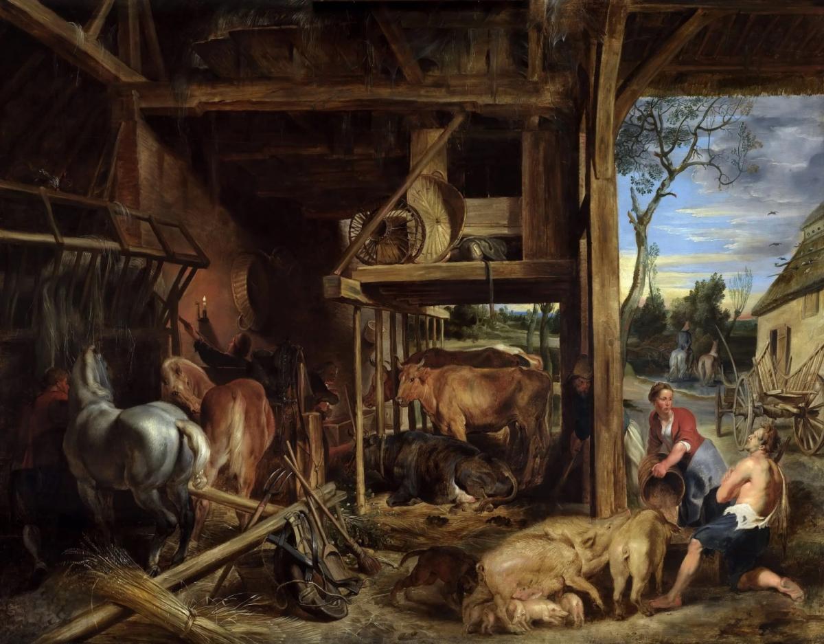 Эту картину Рубенс написал, чтоб повесить в собственной гостиной. И она принадлежала художнику до самой его смерти. Рубенсоведов здесь интересует верхний правый угол картины — там один из первых опытов Рубенса в жанре пейзажа. Нас же — правый нижний, с иллюстрацией к Притче о блудном сыне из Евангелия от Луки.