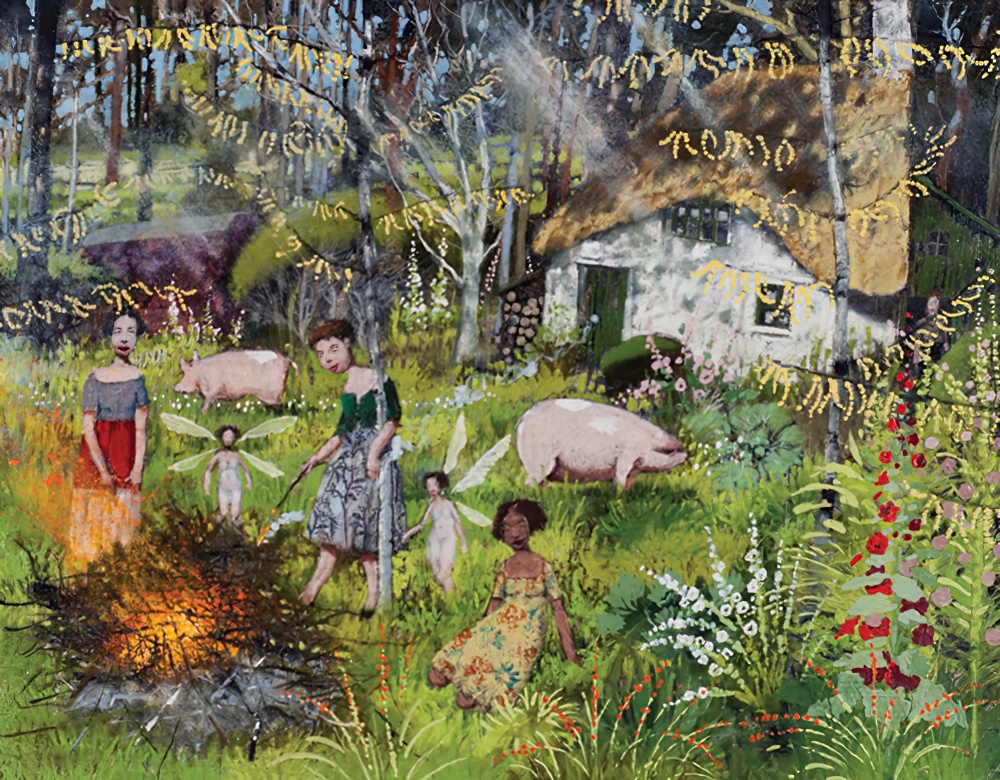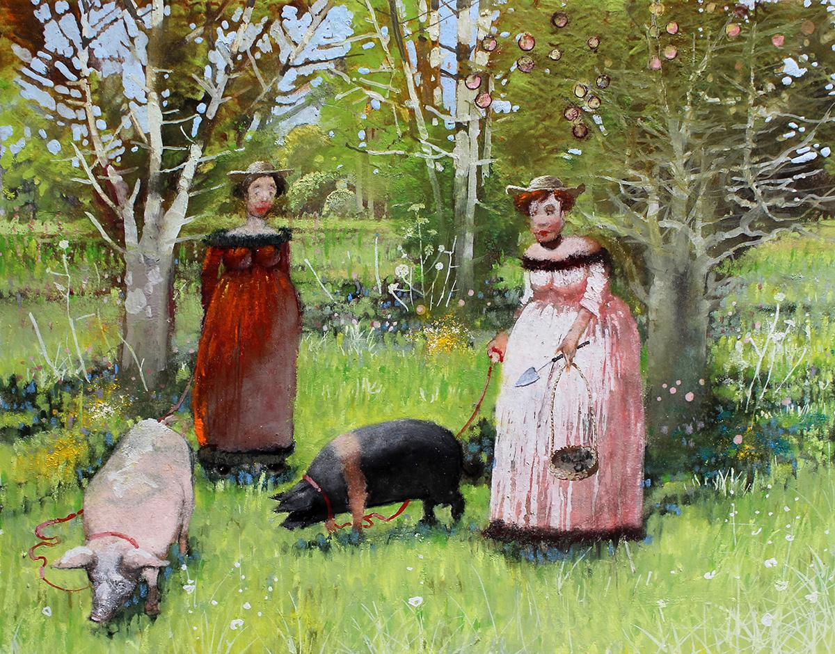 Гоген, как и многие другие художники из Европы и Америки в конце 19-го века, прибыл в Бретань в поисках картин патриархальной жизни, не тронутой прогрессом. И нашёл. Не только деревенские пасторали и свинок, но и новый художественный метод — синтетизм: его приверженцы соединяют на полотне то, что видят в реальности, и свои чувства по отношению к изображаемому. Именно субъективные чувства делают колорит картин неправдоподобно ярким. Что касается свинок, надеемся, это не внутренние демоны Гогена (они бы должны быть пострашнее), а животные, которых он наблюдал в реальности.