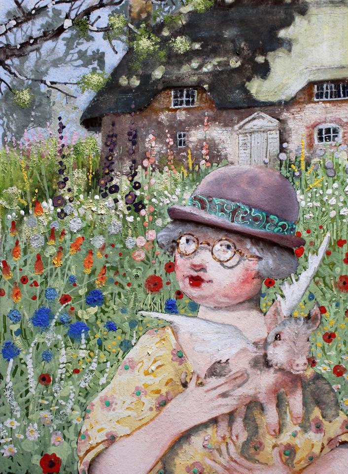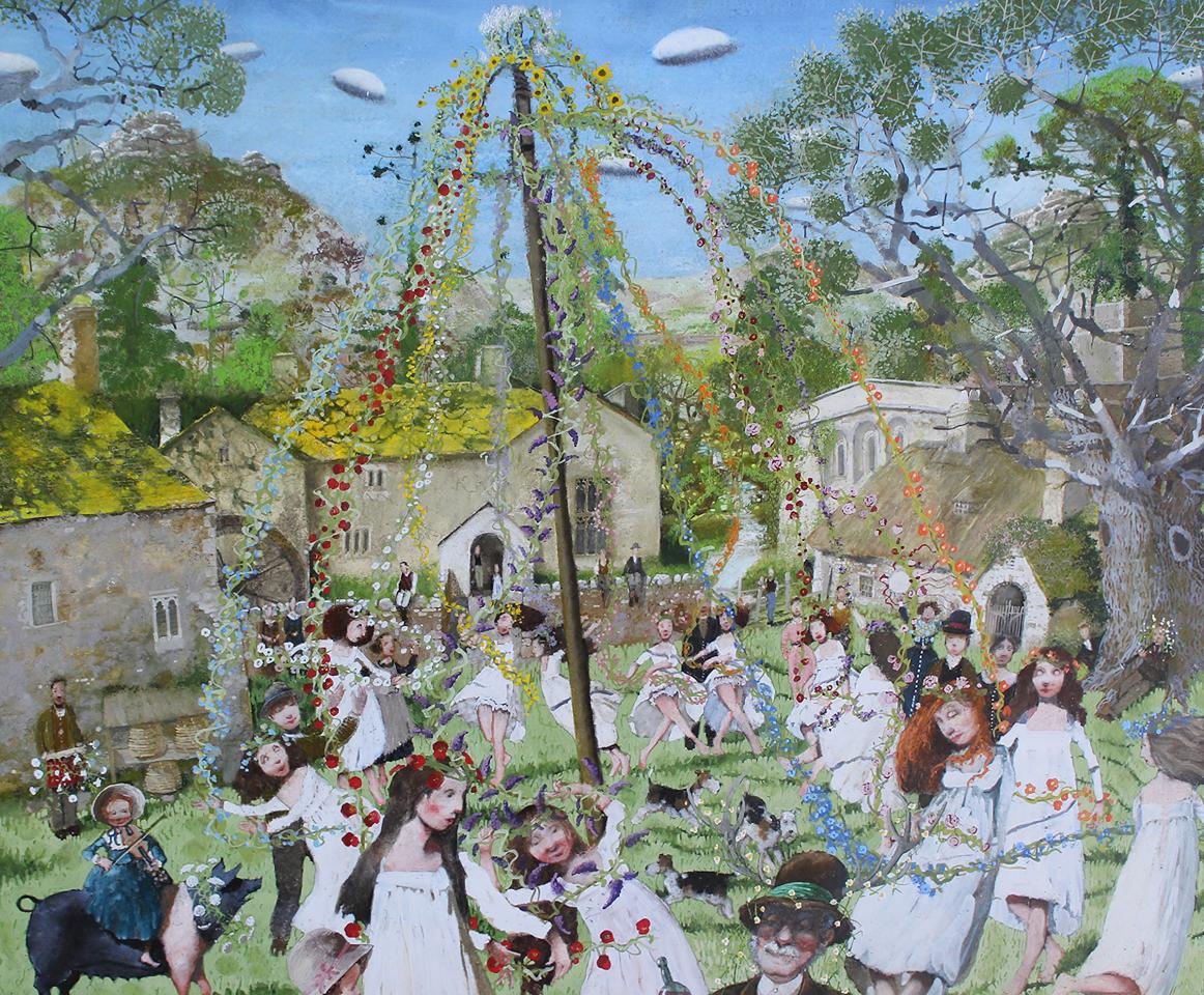 Работы Ричарда Адамса изображают британскую сельскую местность, они вдохновлены его давней любовью к народной архитектуре, сельской истории и местной флоре и фауне. И все же истинным предметом творчества Адамса является мир воображаемый. Его полеты фантазии создают буколический мир, населенный персонажами, занятыми простыми, домашними и сельскими делами, мир, где феи, эльфы и русалки уютно устроились в реальном мире и мирно соседствуют с местными жителями. Его любимый материал - меловая пастель на бумаге, зафиксированная лаком.