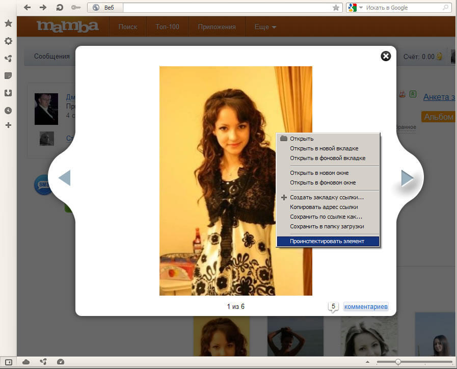 2. Щелкаем правой кнопой на фотграфии и выбираем пункт "Проинспектировать элемент";