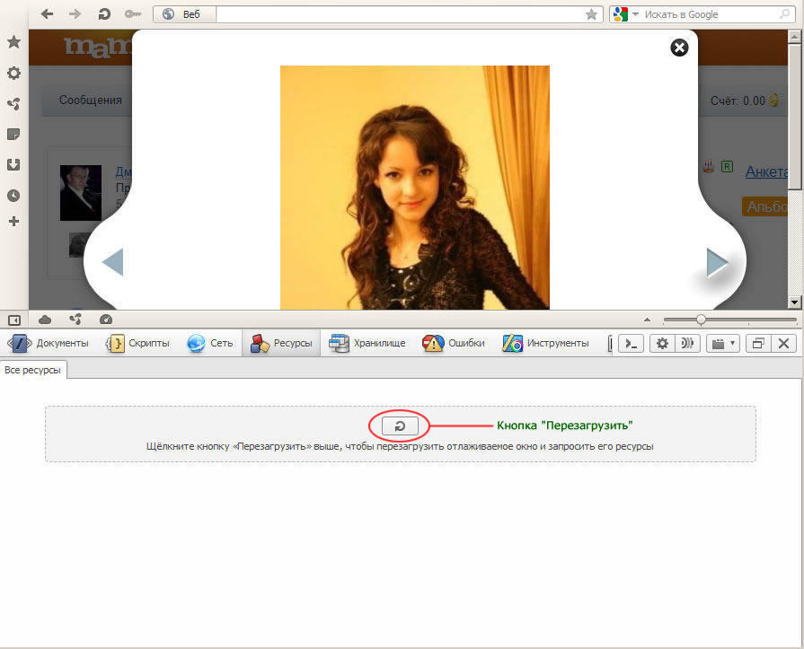 3. В открывшемся внизу инструментарии выбираем раздел "Ресурсы";