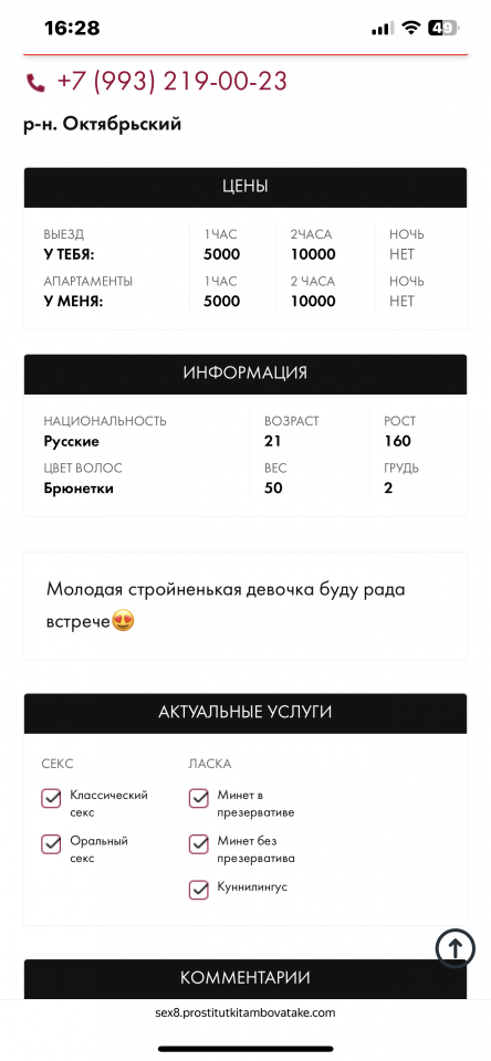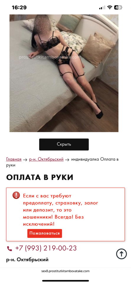 Можете поделиться номерами и адресами дев, которые реально актуальны и работают в Тамбове, а то фейков полно, не хочется на них нарываться, а до некоторых и не дозвонишься