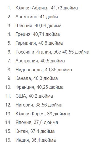 1. ЮАР (обхват 106 см)