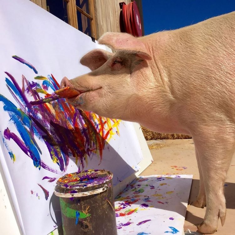 Хозяйка купила ей краски и мольберт и принялась активно рекламировать свинью-художницу в соцсетях. Публика приняла свиное творчество очень благосклонно. Критики описывают стиль необычной художницы как «абстрактный экспрессионизм», а ее полотна продаются по 2,000 долларов за штуку.