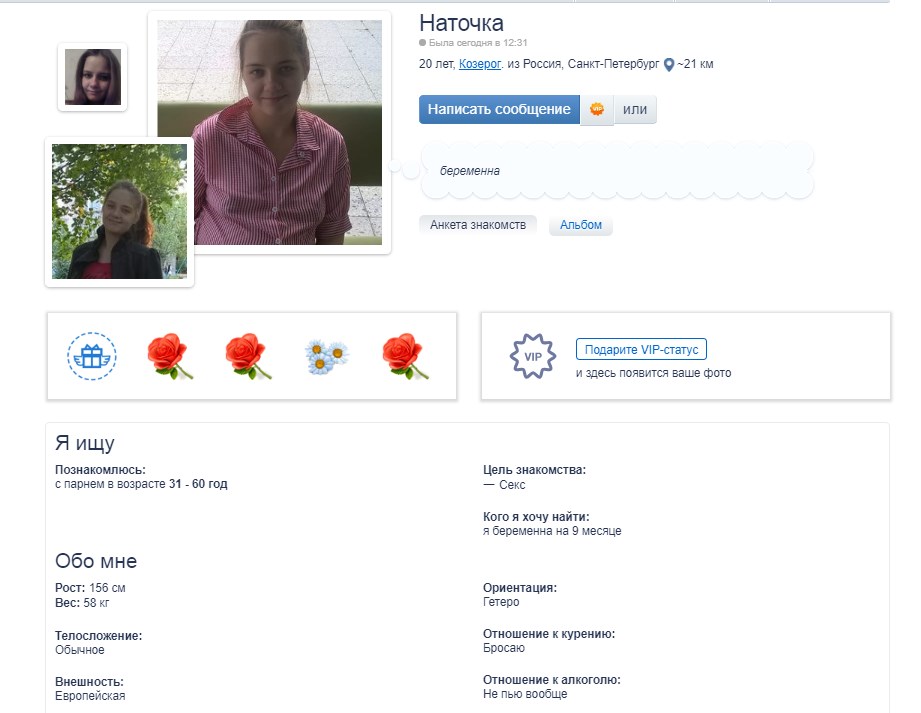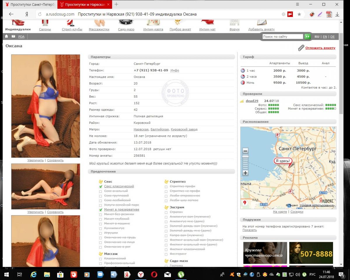 Салон на 9-ой между Средним и Малым. Мордашка приятная, без прыщей. Сюрприз виден, но торчит ещё не сильно, сиськи разбухли. Вышла в числе остальных двухрублёвых дев этого заведения. Цену и услуги по анкете не уточнил, но думаю, что заряжена сильно и можно адекватно опустить.