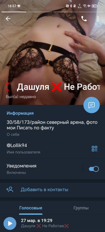Приветствую товарищи, вот и закончился очередной отпуск и я снова уехал воевать. За время отпуска посетил одну деву:@Lollik94-её ник в телеграмме. Принимает в коминтерновском районе воронежа. 30/58/173-параметрам соответствует. Общительная, доброжелательная. Ценник - 4 к. секс +мбр. А/с +2к. Окончание в рот +500р.Фигурка хороша, на вид не больше заявленного возраста,грудь крепкая двойка, не висит, хоть и рожала - выдают только растяжки на груди. Сначала взял классическую программу, спросила - мине в презике или нет, конечно нет. Залила все хлоргексидином перед процессом. Миннет на твердую 4, хорош, но был пьян и не смог оценить его по достоинству. Потом приступили к основному действию - опробованна миссионерская поза и сзади, то бишь раком. Попа не большая, крепкая, соблазнительная короче. И решил доплатить 2 к и зайти с черного хода. Принимает без проблемм, в а/с и закончил. Никаких посторонних запахов не было. Правда потом плохо стало, так как укачало от действия по пьяни. Впечатления остались положительные, рекомендую к посещению. Нужно будет в следующий раз посетить трезвым чтобы по достоинству оценить деву.