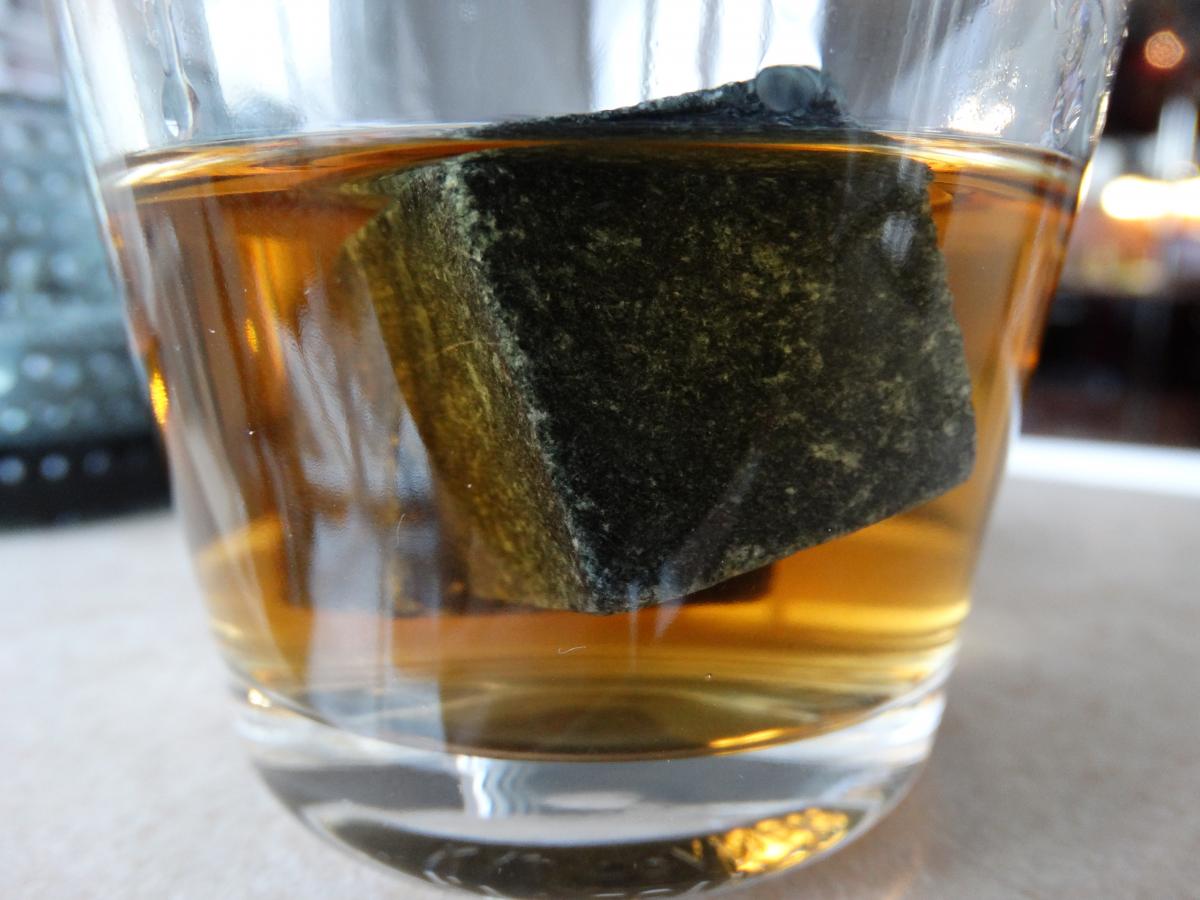 Некоторые сорта виски, в особенности дешёвые и с резким вкусом можно разбавить водой для смягчения вкуса. Действительно, вкус тогда меняется в лучшую сторону. Вместо воды можно использовать лёд, так как виски не хранят в холодильнике, а наилучшая температура для употребления это градусов 18. В баре на полке значительно теплее. поэтому лёд используется и для небольшого охлаждения. Но есть сорта виски, как правило дорогие, которые не рекомендуется, и не хочется разбавлять, ибо вкус при этом упрощается и теряет благородный букет. Вот в этом случае и используют камни.
