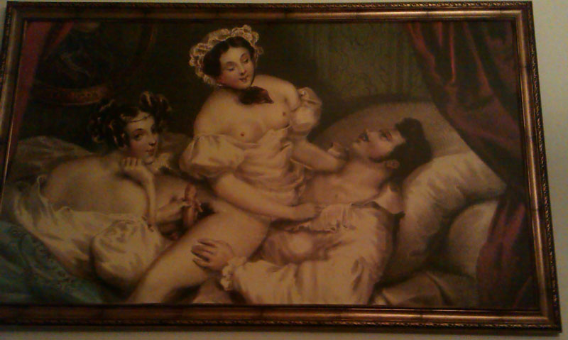 В комнате висят две картины крайне непристойного содержания. Не удержался, чтобы не запечатлеть их на память))