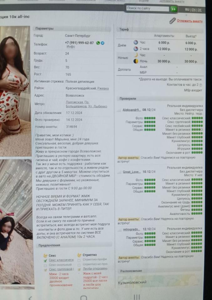 Ещё одна неудачная история. Анкета РД 314694. Телефон 991-999-62-87, ТГ @Myrkuc4