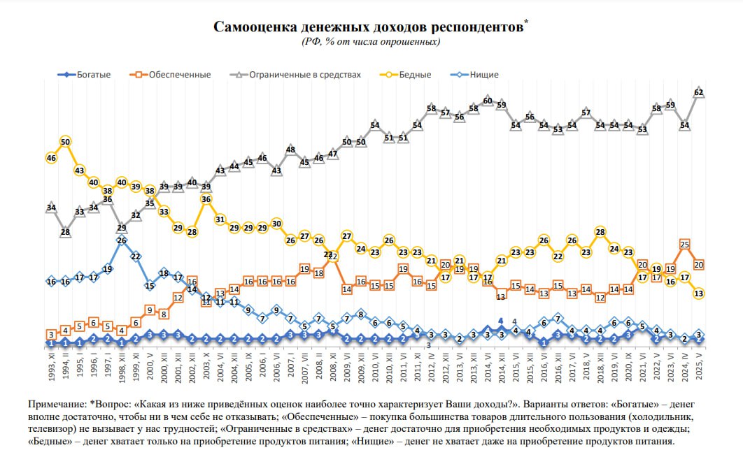 3. Сокращение бедности: Совместная доля "бедных" и "нищих" достигла исторического минимума (16%). Это важное социальное достижение, которое, однако, не отменяет проблему глубокого неравенства между верхними 1-2% и остальным населением.