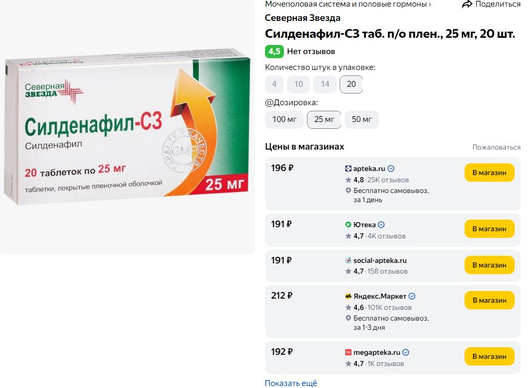 При цене около 200р за 20 таблеток по 25мг - огонь решение. Лично мне хватает одной таблетки чтобы не думать о том встанет или нет при виде любого гоблина. К сожалению на рефрактерный (слово умное, узнал о нем сегодня) период не влияет почти никак - как был однопалчанин так и остался