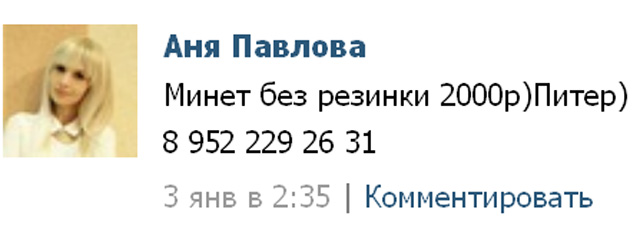 не встречался и не собирался (не ищу мбр), но почему-то запомнилась, ибо фотки на её странице листал - так что оказалось не проблемой заскринить её объяву из тематической группы