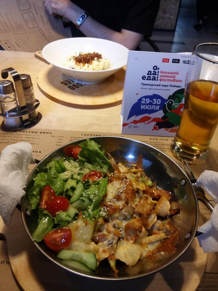 Меню практически полностью состоит из уличной еды разных стран. То, что брали, было вкусно (только названия я не смог запомнить). Порции довольно большие, к супу и второму салат уже брать не хочется. Хотя с Танженом, конечно, не сравнить